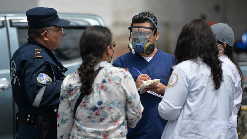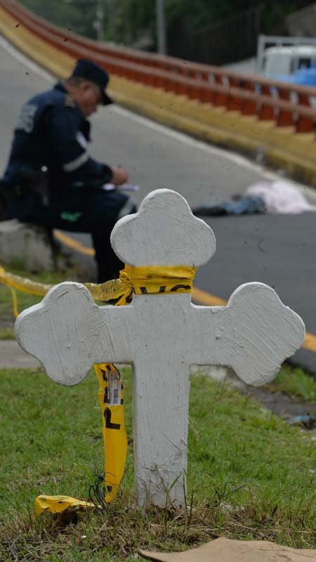 - Auxiliar de Medicina Legal se alista para retirar el cuerpo de la zona. Foto EDH/ Jonatan Funes