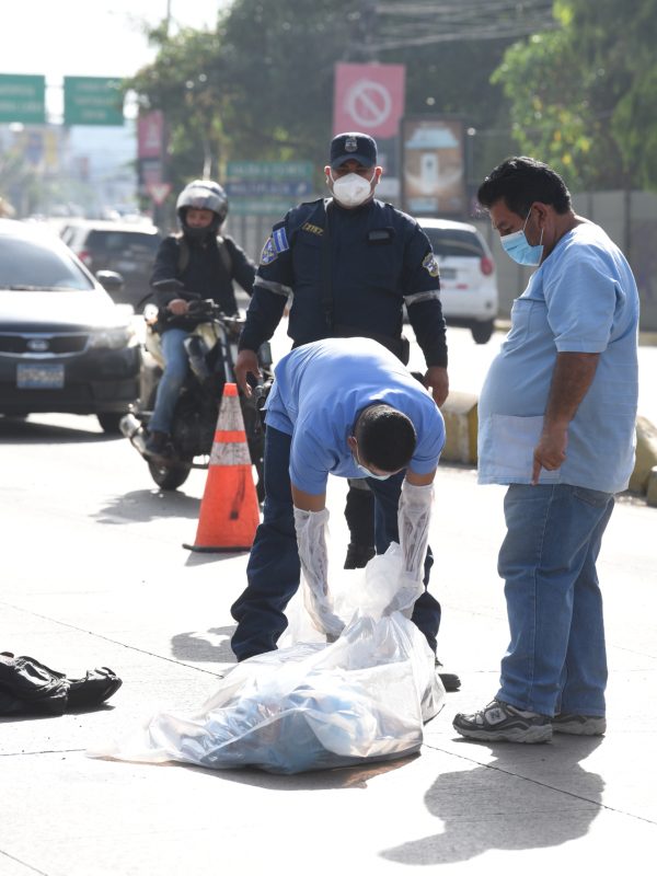 - Un trabajador del Instituto de Medicina Legal recogió los zapatos del sacerdote. Foto EDH/ Menly Cortez