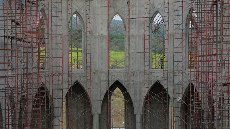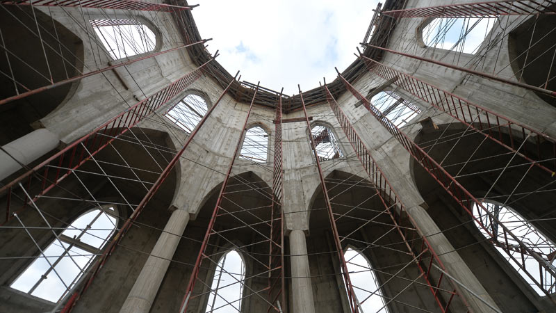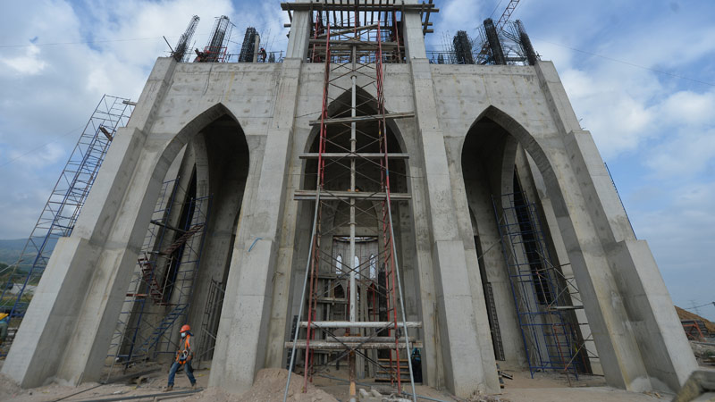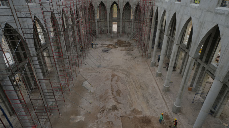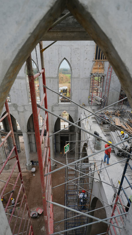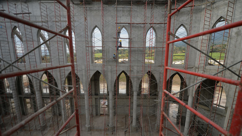 - La iglesia con un estilo gótico policromado lleva un 70% del avance de la obra gris, después viene la fase de acabados, con mucho arte y pintura a mano. Foto EDH/ Jonatan Funes