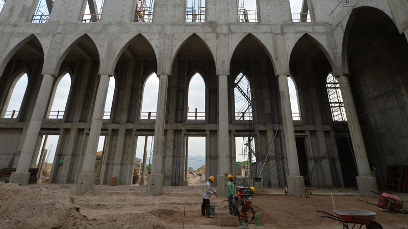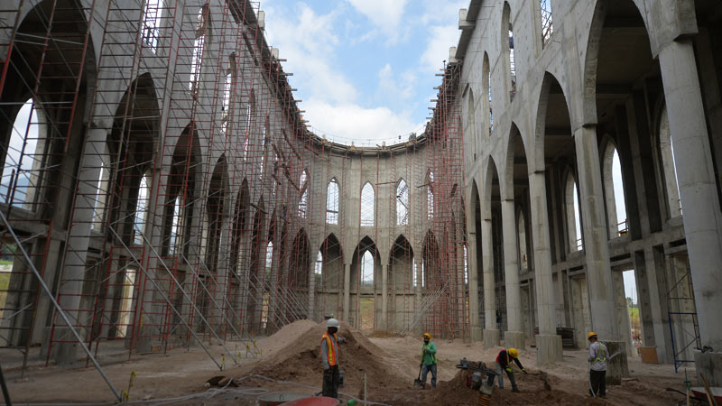 - Desde hace décadas no se construía en El Salvador una iglesia católica de tales dimensiones. “La idea es que sea un lugar de peregrinación, que las personas vengan a encontrarse con Dios, a dejar sus problemas con la santísima virgen y pedirle solución, un refugio de paz. Es el lema: Foto EDH/ Jonatan Funes