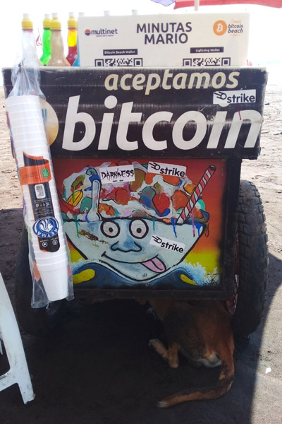 - Mario de la Cruz Peña García con su carretón de minutas en la playa El Zonte. Foto EDH Cortesía
