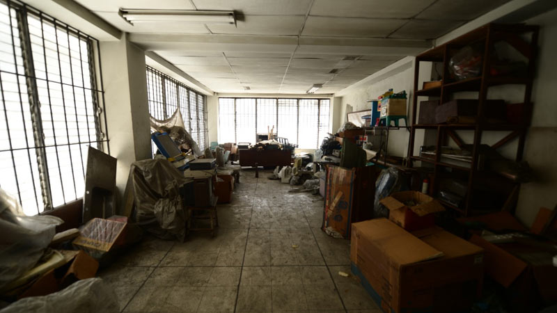 - Interior del Edificio Hasbún. Su primera planta se utiliza como un local de venta de artículos varios y una relojería, pero los demás pisos se usan como bodega.Foto EDH/ Francisco Rubio