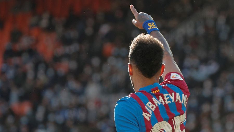 En su segundo partido como titular con el primer equipo azulgrana, el delantero gabonés se estrenó como goleador y convirtió Mestalla en su estadio fetiche, pues en la temporada 2018-19 anotó también tres dianas en la semifinal de la Liga Europa vistiendo la camiseta del Arsenal.