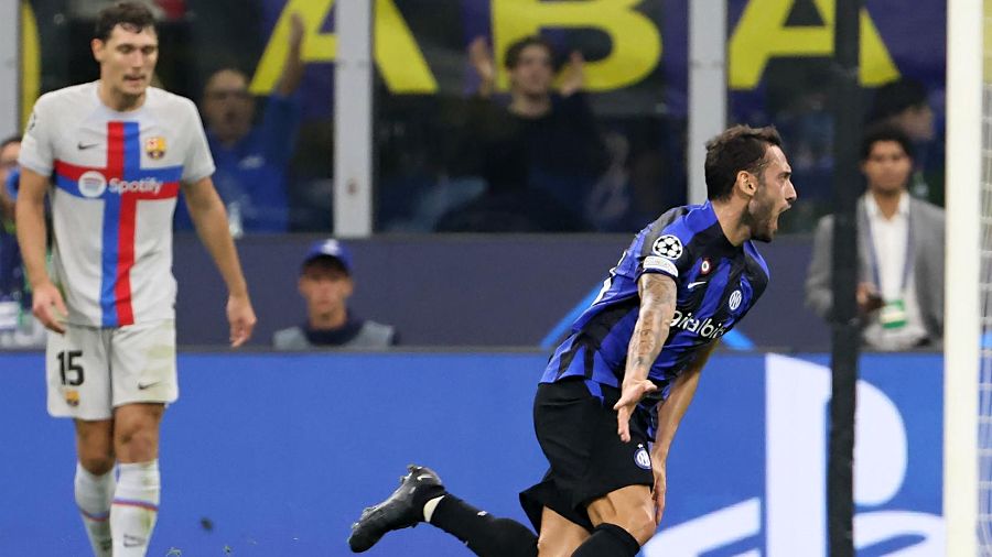 Un gol del turco Hakan Calhanoglu (45+2) sentenció al equipo azulgrana, que queda tercero del grupo C (3 puntos), tras el líder Bayern Múnich (9) e Inter (6).