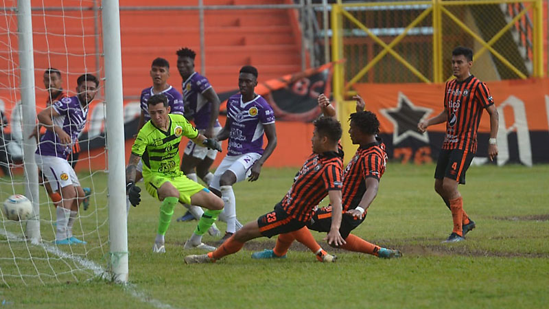 Hasta el primer cuarto de hora, Águila tuvo más tiempo la pelota y consiguió filtrarla entre los escasos espacios que le dejaba la defensa de Platense. Quien más cerca tuvo el gol fue Fredy Espinoza, quien asomó al segundo palo en un centro desde la derecha de Jomal Williams que parecía enroscarse hacia las redes.