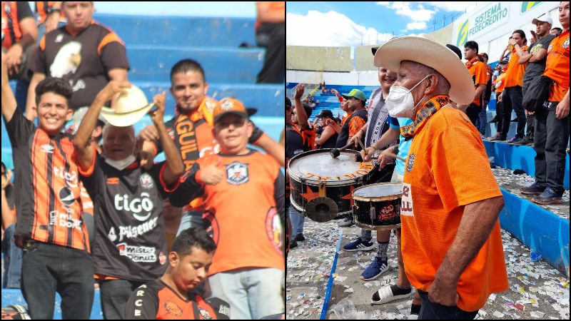 La persona es un señor de la tercera edad y quien estuvo cercano a "La Banda de la capital", barra organizada del los migueleños, cantando y saltando.