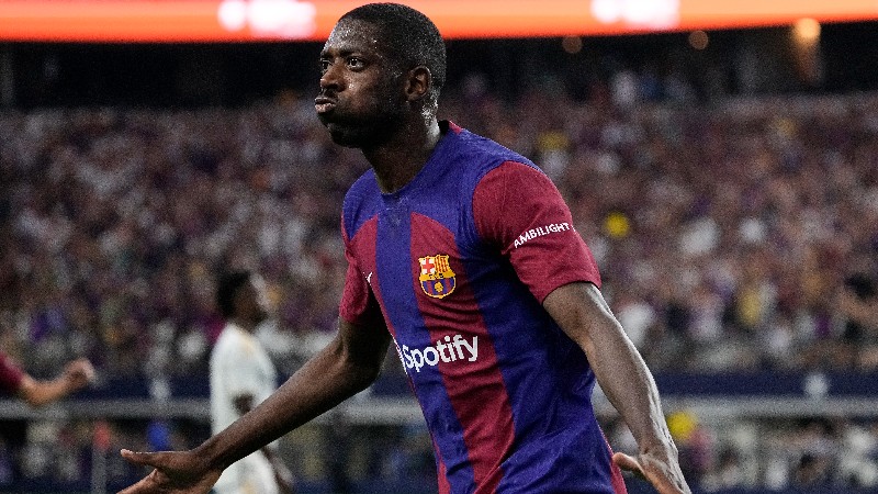 Sobre el 15', y luego que también el travesaño había salvado la cabaña de Courtois por un tiro envenenado del culé Romeu, llegó el primero en una jugada ensayada, a balón parado, en la que se amagó con un centro directo, pero Gundogan jugó hacia atrás, Pedri filtró, Romeu hizo pantalla y Dembélé entró por una escuadra, desde donde remató potente para vencer al meta madridista.