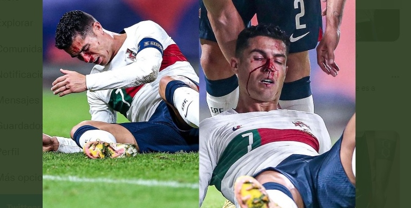 El delantero Cristiano Ronaldo sufrió un fuertísimo golpe en el partido en el que su Selección, Portugal, goleó por 0-4 a República Checa en Praga por la Liga de Naciones de la UEFA.