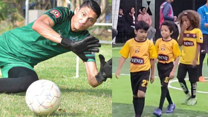 En el corto que subió a su cuenta, el portero del Cumbayá FC de la Primera ecuatoriana mostró a su "rey", como él lo llama cariñosamente, vestido con un uniforme amarillo y en una cancha de fútbol, usando el dorsal 8. El pequeño va en el desfile de entrada, saluda al otro equipo y se prepara para iniciar el partido. Parece que fuera una especie de fútbol sala o un campo en una duela techada.