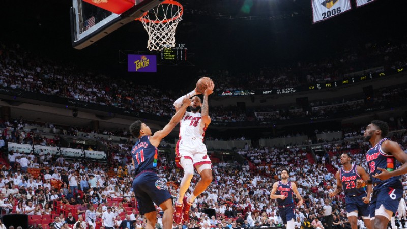 El Miami Heat tuvo una defensa muy férrea, al limitar a los mejores anotadores de los Sixers, como el camerunés Joel Embiid, con 17 tantos, y James Harden, con apenas 14 unidades. Fue una noche difícil para los Sixers, especialmente para Embiid, su mejor jugador, que juega con una máscara para protegerse de una fractura facial y también tiene una lesión importante en el pulgar. Además, se lastimó en el primer cuarto cuando trató de zambullirse en algunos asientos de primera línea mientras intentaba salvar un balón suelto.