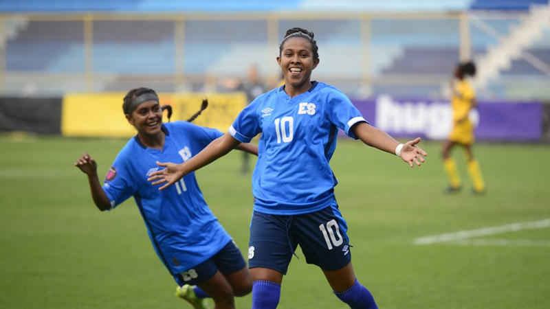 El partido le se puso de cara a las cuscatlecas en tan solo 22 segundos de juego. Tras el saque inicial por parte de las caribeñas, recuperó pronto El Salvador y Yoselyn López, quien recibió dentro del área, acomodó el balón en la meta con un suave remate cruzado que descolocó a la portera Kamillah Burke, aún muy rígida con sus piernas.