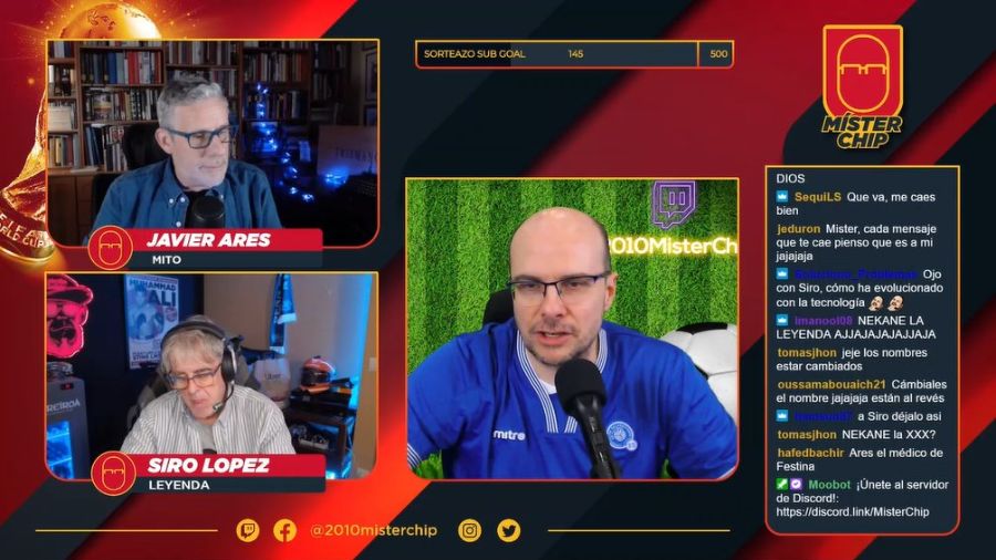 Recientemente Mr. Chip transmitió en Twicht junto a Javier Ares y Siro López para hablar del deporte más bello del mundo.