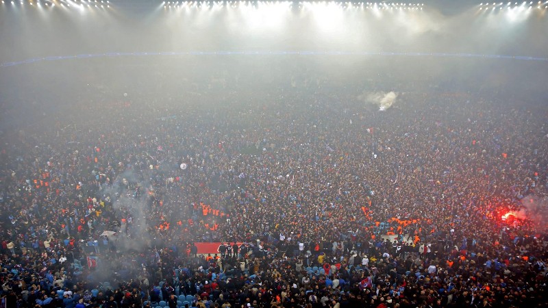 Tras 38 años de espera, los aficionados del Trabzonspor se lanzaron a festejar en plena cancha y con bengalas