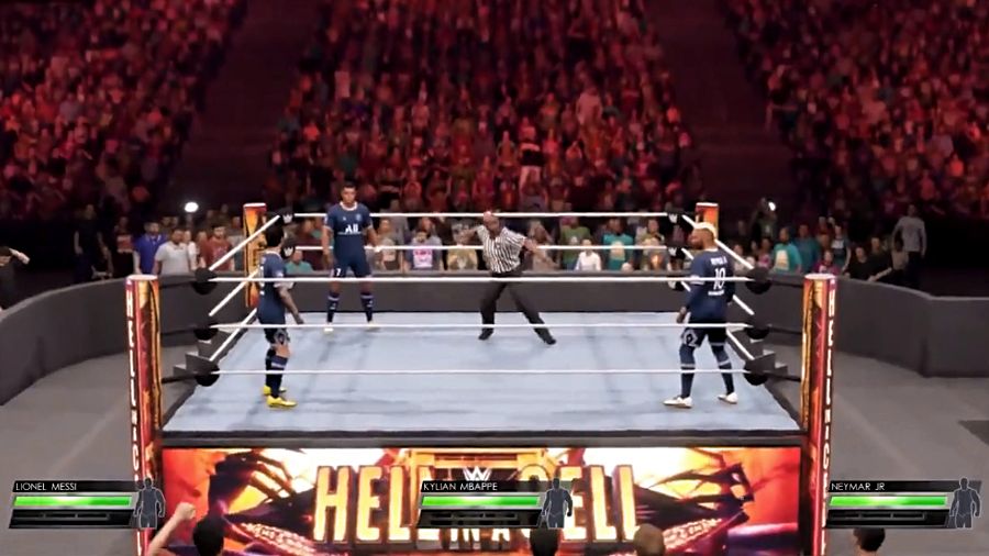 Messi, Neymar y Mbappé se enfrascaron en una batalla al mejor estilo de la WWE. Bueno, no es ninguna metáfora, de verdad se dieron con ganas pero en una simulación entretenida de animación por computadora.