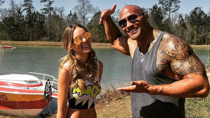 La Roca y Belinda se tomaron una fotografía durante la grabación de la película de salvavidas en la playa, esta fotografía aún se encuentra en el perfil de Instagram del actor.