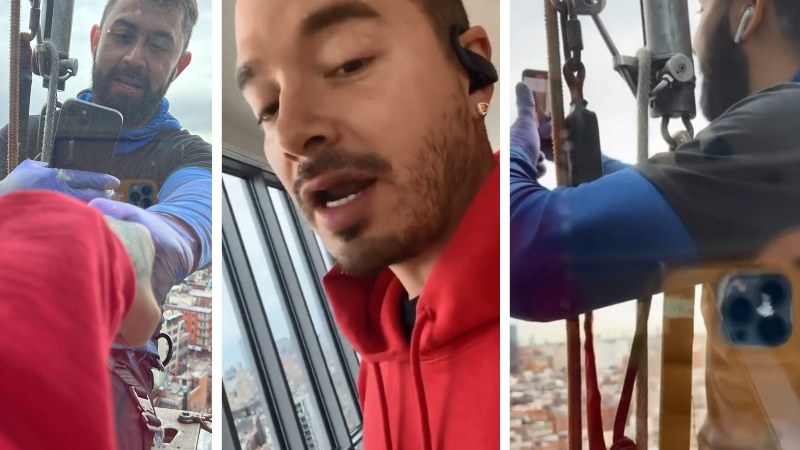 El cantante mostró lo difícil de este trabajo, especialmente cuando se hace colgado de un edificio.