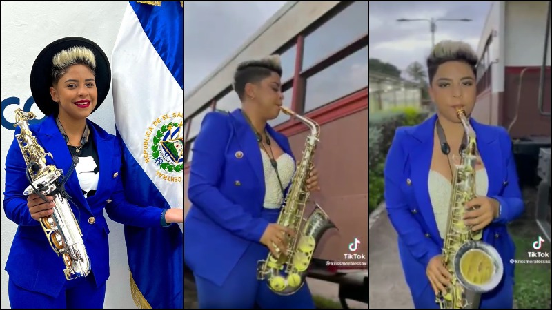 Kriss Morales es originaria de Juayúa y en redes sociales está cautivando a miles de usuarios tras tocar "Patria querida" y otras melodías salvadoreñas con su saxofón.