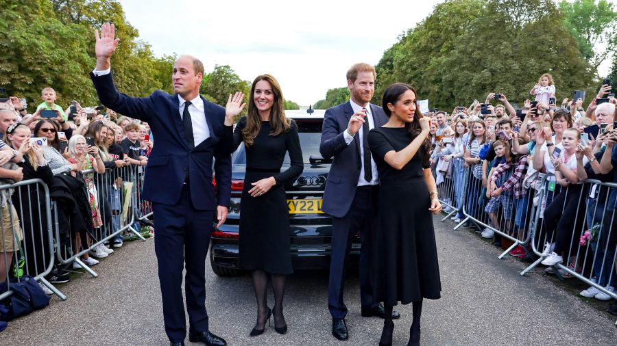 los príncipes Guillermo y Harry han caminado nuevamente juntos y acompañados por sus mujeres, Kate Middleton y Meghan Markle en honor a la reina fallecida.. Foto AFP/ Kirsty O'Connor