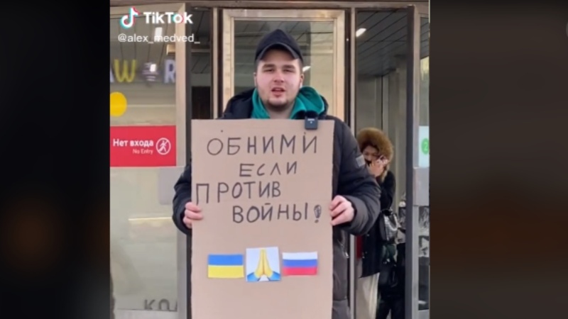 VIDEO. El tiktoker ruso que reparte abrazos en contra de la invasión y logra 16 millones de visualizaciones
