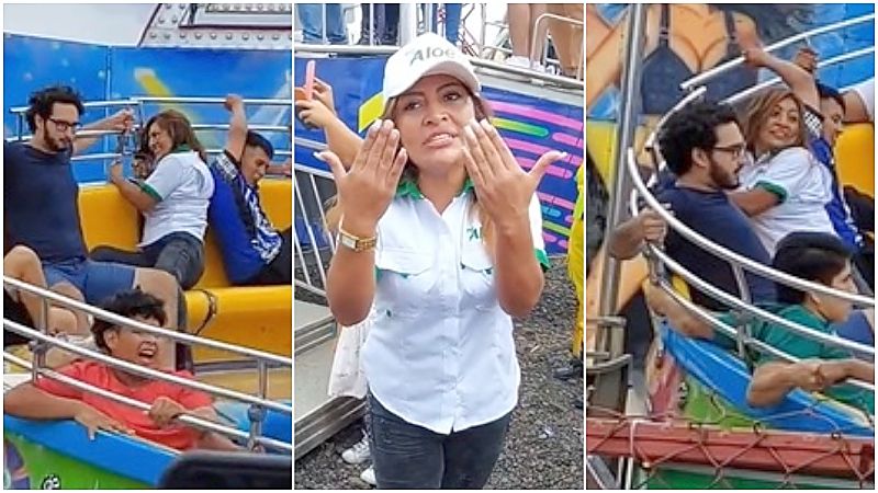 En las imágenes se aprecia como la influencer va sentada en el “plato giratorio” mientras se sujeta fuertemente de las barras de metal; luego, el juego mecánico comienza a sacudirse con la intención de hacer caer a los tripulantes.