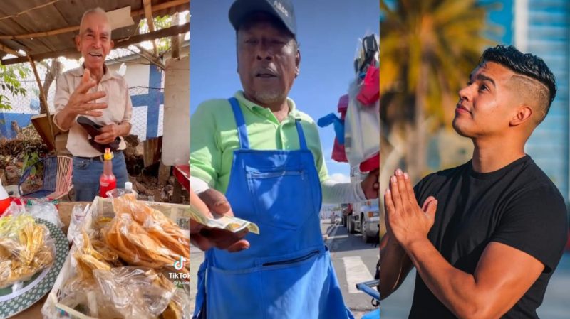 En agradecimiento el joven conocido como el “ángel de TikTok”, le entrega un billete de alta denominación al salvadoreño, quien lo recibe sorprendido y le responde con un “gracias hijo, que Dios te bendiga, que Dios te multiplique”.