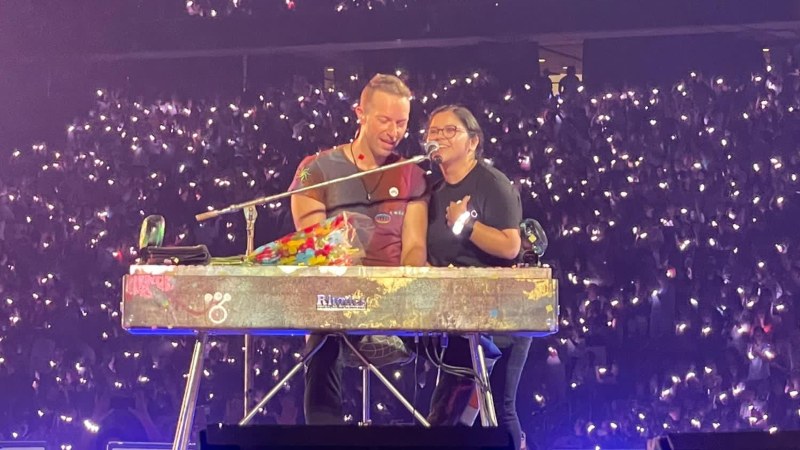 La joven salvadoreña, de 23 años, viajó desde el país hasta los Estados Unidos para disfrutar del concierto de Coldplay, pero nunca se imaginó que el líder de la banda, Chris Martin, la invitaría a cantar junto a él frente a miles de personas.