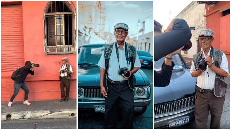 "Vi a este fotógrafo en la catedral de Santa Ana, así que fui a ofrecerle unas fotos", escribió el joven en su video publicado en TikTok, mientras se muestra a don Porfirio en el lugar ejerciendo su servicio.