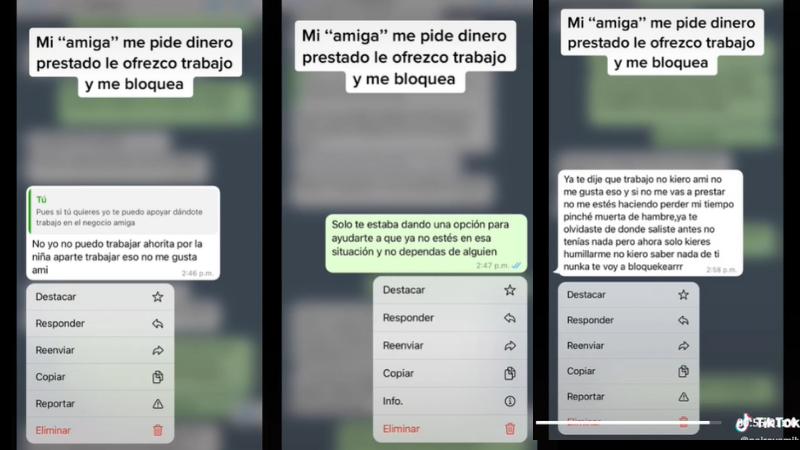 Una usuaria de TikTok expuso a su presunta amiga luego que esta se molestara cuando le ofreció trabajo en lugar de prestarle dinero.
