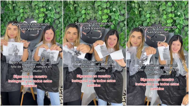 Con motivo de celebrar el Día de San Valentín, este salón de belleza lanzó descuentos especiales para sus clientas que llevarán una fotografía junto a su ex pareja al estudio y la rompieran frente a ellos, así les darían un 20% de descuento en su cambio de look.