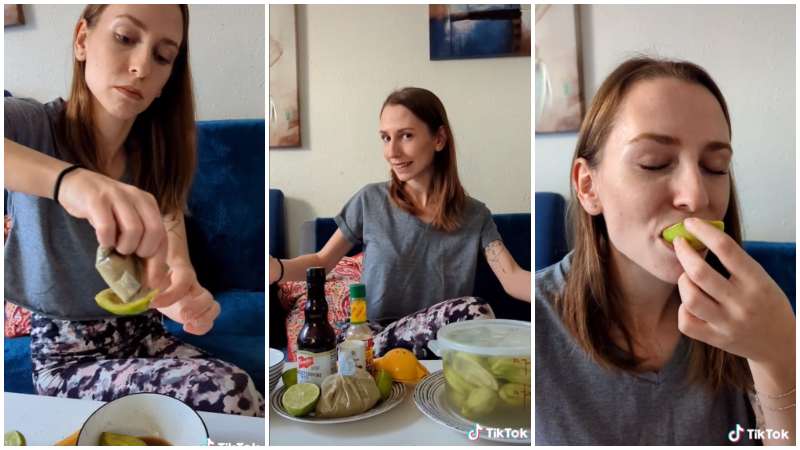 Natalia es el nombre de la tiktoker que no se resistió a la tentación de comer esta exótica fruta que los salvadoreños acompañan con diferentes ingredientes.