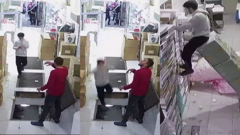 Un video que se ha viralizado en redes sociales registra el momento en que un muchacho sufre el percance en un almacén de Turquía.