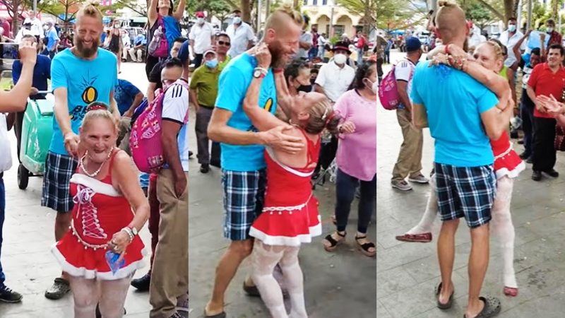 En el video se aprecia a la septuagenaria dando su acostumbrado show ante el público, cuando a lo lejos aparece una pareja de extranjeros. Yajaira, al percatarse de la presencia de los turistas, sale a su encuentro. Ni harta ni perezosa, toma de la mano al muchacho rubio, barbado, corpulento y de gran tamaño y lo invita a la “pista de baile” para que se divierta con ella.