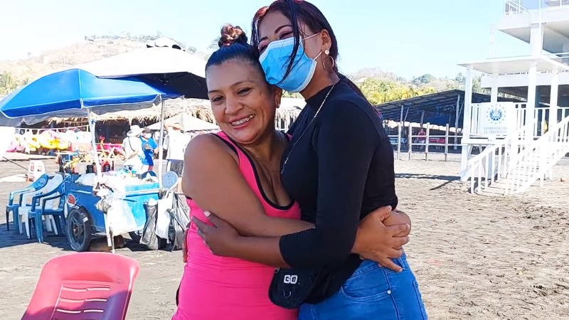 Aprovechando un viaje a esa popular playa del departamento de La Libertad, la exvendedora de agua, no dejó escapar la oportunidad de hacer ese trend junto a la bella joven.