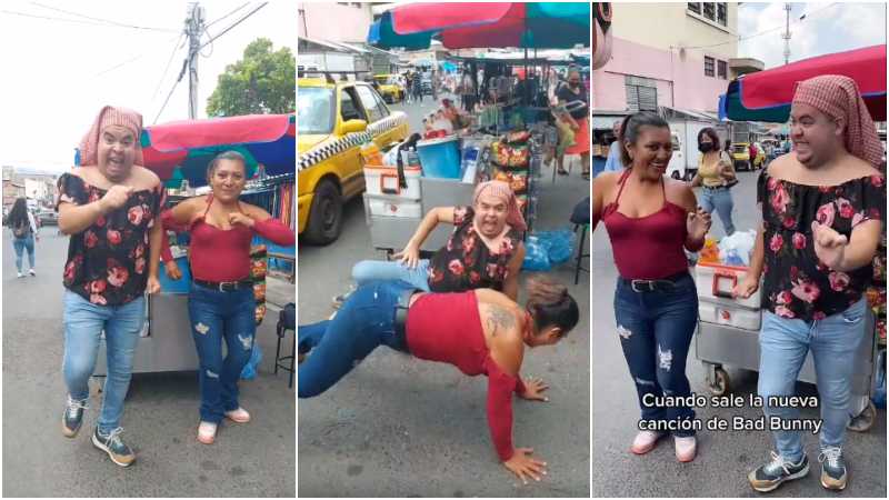 La famosa vendedora del centro compartió en su cuenta las grabaciones que realizó junto al personaje de Diego Madrid, uno de ellos fue el trend de Anita, con su canción 'Envolver'; sonido que los llevó a tirarse al suelo para hacer el famoso baile en el que te pones en plancha para mover tu cuerpo.