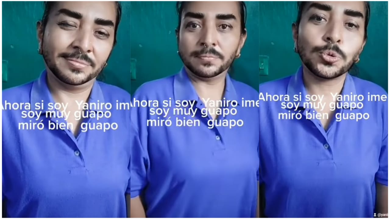 En su Instagram @yaniraberrios700 compartió un video donde aparece transformada con una camisa celeste tipo polo, su rostro con barba, bigote y cejas gruesas, junto a la leyenda: "Ahora si soy Yaniro, soy muy guapo, me miro bien guapo".