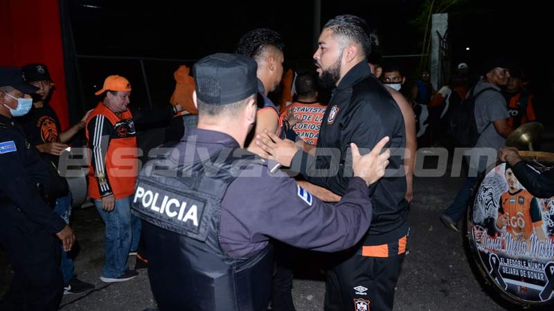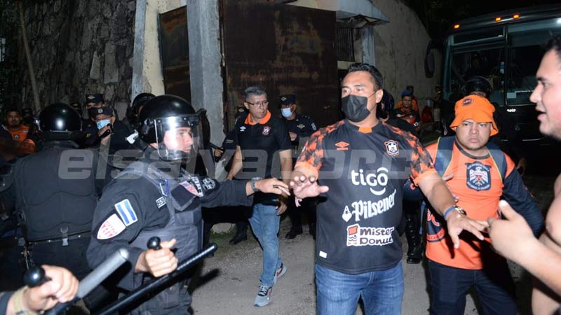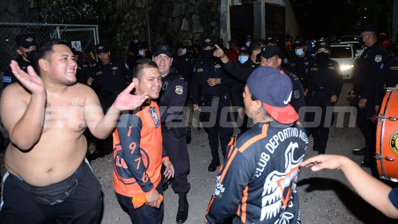 Momentos de tensión fueron los que se vivieron en las afueras del Estadio "Juan Francisco Barraza" cuando fanáticos del Águila se encontraron con la Policía antes de que salieran los jugadores del partido contra el 11 Deportivo.