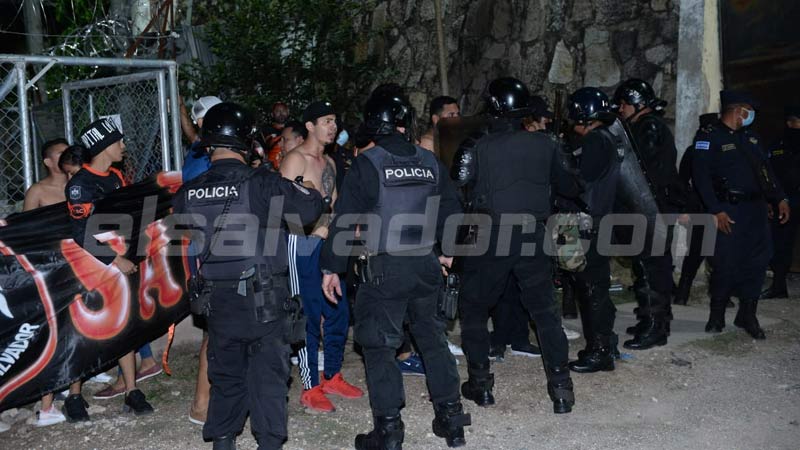 - La barra insistía en permanecer en la entrada VIP del estadio donde solo tienen acceso los jugadores, dirigentes, entre otros. La Policía intentó dispersarlos de la zona. Foto EDH/ Lissette Monterrosa