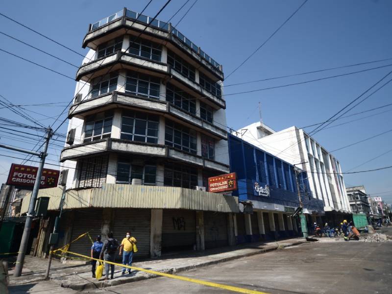 - El edificio Florida es un almacén de utensilios para el hogar. Varias estructuras quedaron visibles tras el desalojo. Foto EDH/ Francisco Rubio