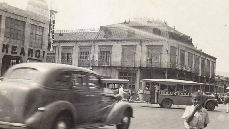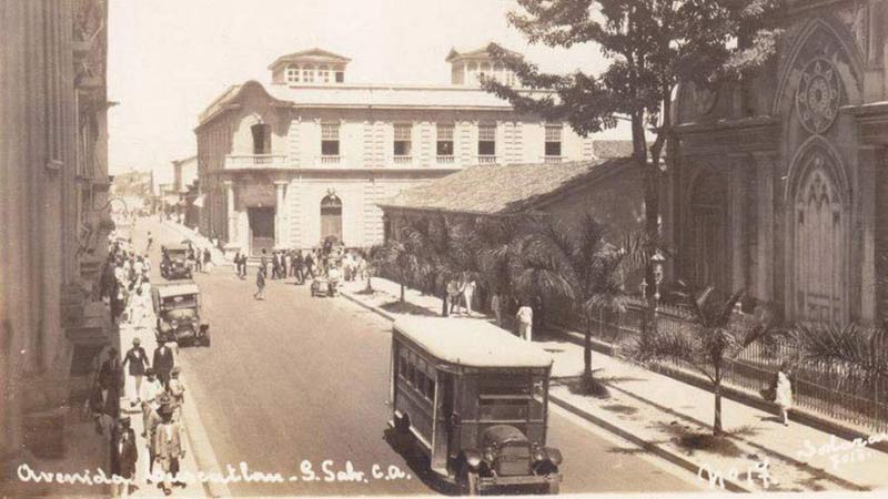 - Estas pertenecían a una flotilla propiedad del italiano Eloy Amoboni. Una buseta sobre la Avenida Cuscatlán, al fondo la Tesorería General, en los años 30’s. Foto EDH/ Cortesía Carlos Quintanilla