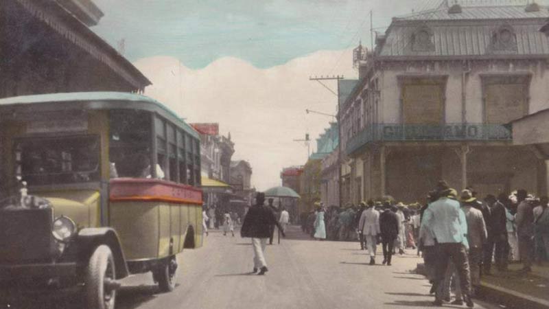 - Con el auge de los autobuses, las distancias que se recorrían en horas se acortaron a minutos. Transporte en la Calle Arce, imagen de los años 30’s. Foto EDH/ Cortesía Carlos Quintanilla