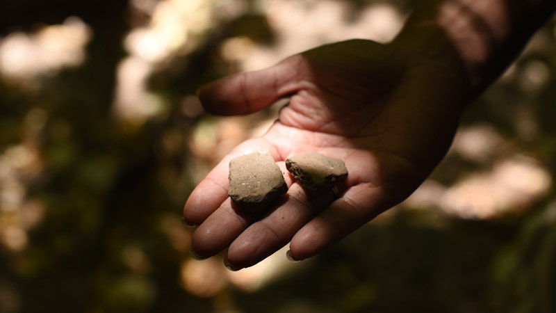 - En la cueva y sus alrededores se encuentran entre la vegetación vestigios de objetos de barro. Foto EDH/ Menly Cortez