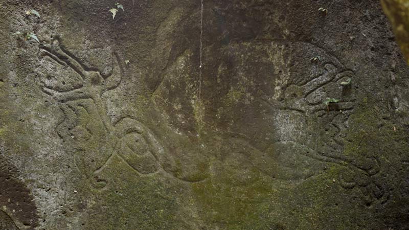 - Una de las singularidades de esta cueva son unos grabados que describen algunas especies que pueden ser de origen mítico, se desconoce de que época datan estas marcas; sin embargo, los habitantes del Mangal, aseguran que han visto estas imágenes desde que tienenmemoria. Foto EDH/ Menly Cortez