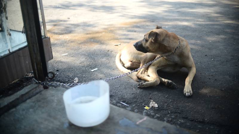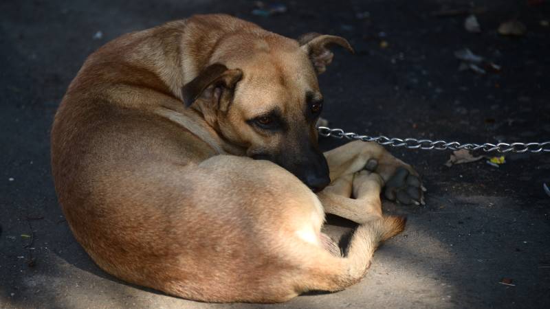 Cuatro perros fueron abandonas en la calle Ruben Dario por sus dueños quienes tenían puestos de ventas varias en ese lugar.