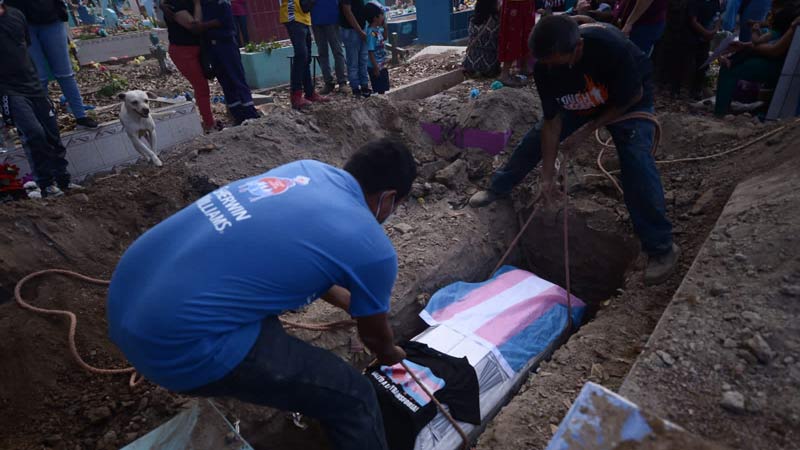 - Durante el sepelio, se le colocó una bandera con los colores que representan a las mujeres y hombres trans. Foto EDH/ Francisco Rubio