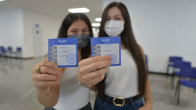 - Dos jóvenes muestran la cartilla de la cuarta dosis anticovid. Foto EDH Jonatan Funes.