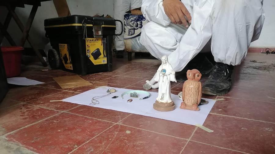 - Durante las investigaciones en la vivienda del callejón Estevez se encontraron imágenes de veneración esotérica. Foto EDH/ cortesía
