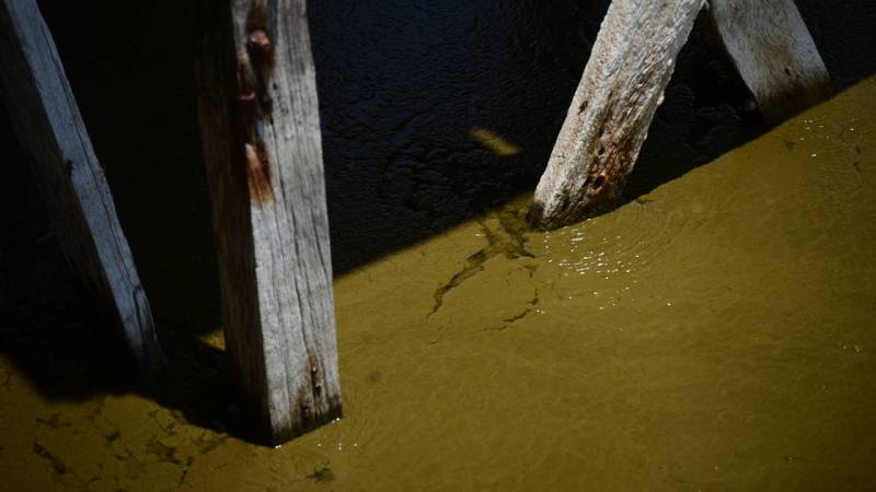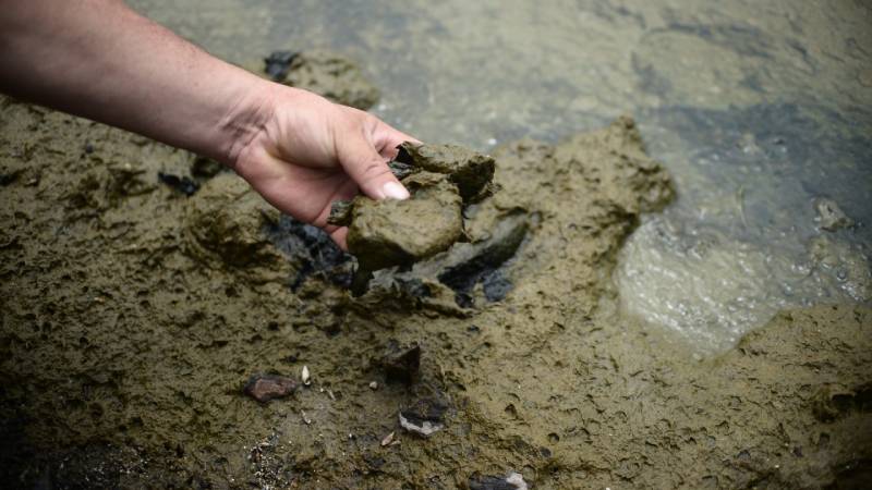 FOTOS: "Esto es putrefacción, huele horrible". Población alrededor del lago de Coatepeque es afectada por las microalgas