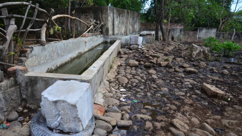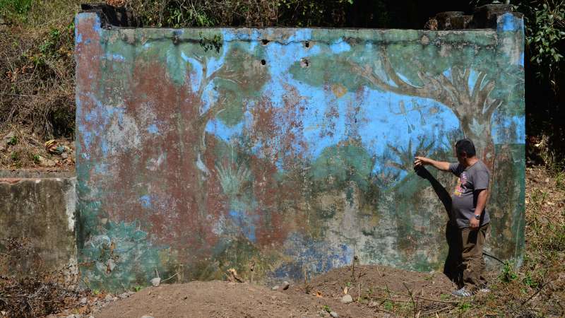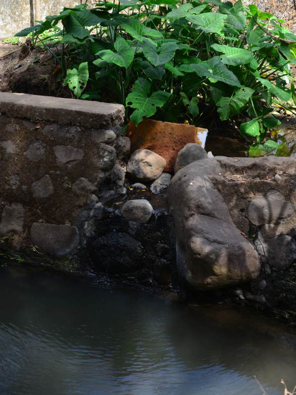 - En el nacimiento del río hay dos estructuras rectagulares y una cuadrada(en algún momento techada), todas construídas con ladrillo de barro y cemento, esas servían para acumular agua allá por llas décadas de los 70 y 80. Foto EDH/ Yessica Hompanera
