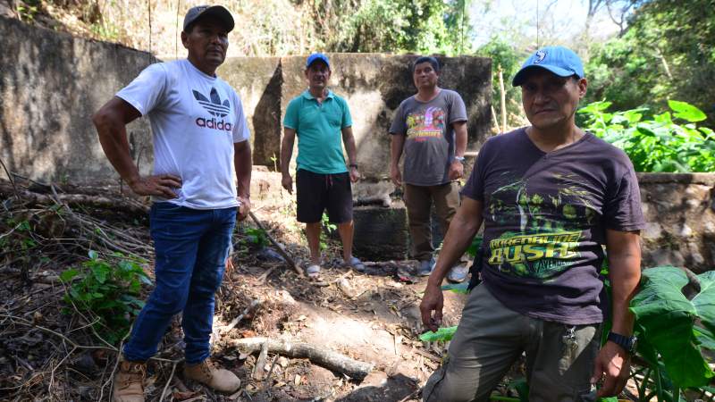 - Eduardo Molina, Gonzalo Romero, Héctor Calderón y Antonio García, son parte de los encargados de mantener y vigilar el agua que nuevamente brotó. Ellos señalan que se trata de "un milagro de Dios y la naturaleza". Foto EDH/ Yessica Hompanera