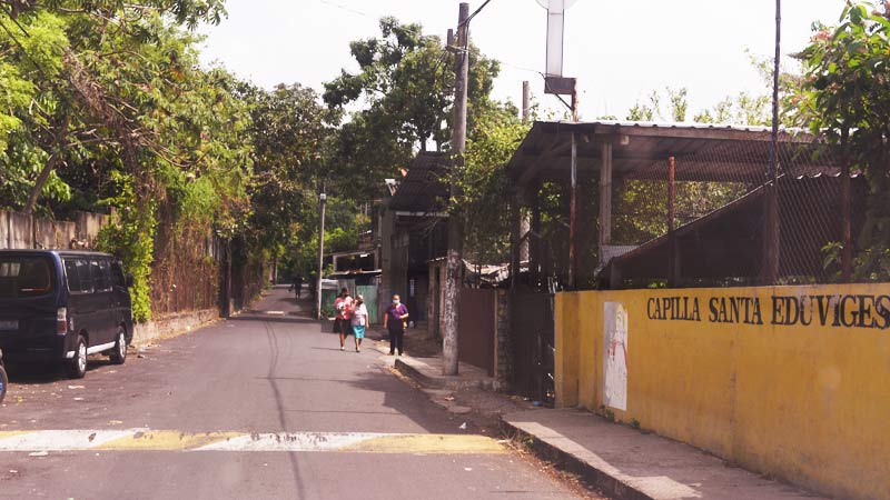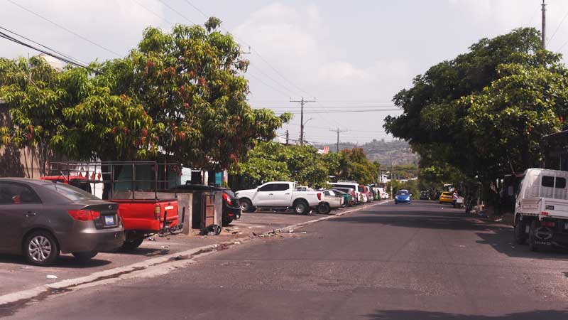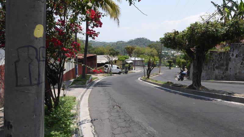- Foto de la calle principal de la entrada a la colonia Vista al Lago. Este complejo habitacional ha sido señalado por ser territorio de la pandilla MS. Uno de los casos violentos ocurridos en la zona fue la desaparición, tortura y asesinato de 4 soldados en el año de 2016, los cuerpos fueron encontrados años después en una de varias fosas clandestinas que se han encontrado en la zona. Hasta el pasado domingo 6 de abril, no se visualizó ningún reten. Foto EDH